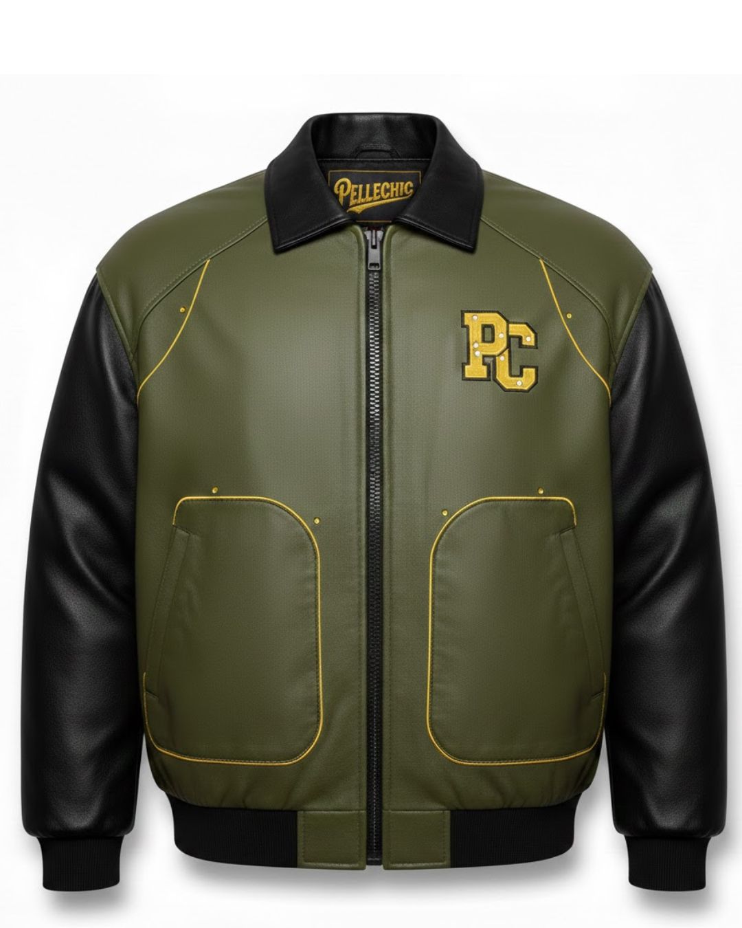PelleChic Dragon Leather Jacket – Olive Green & Black Bomber Jacket