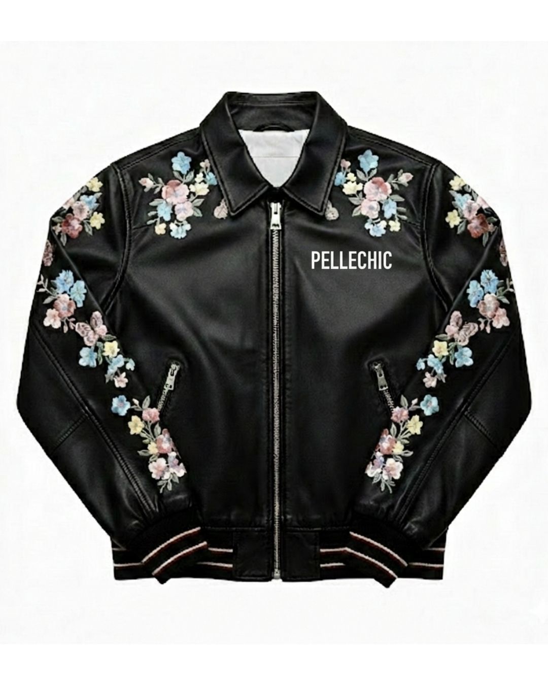 Where Rugged Leather Meets Delicate Artistry Embrace a new standard of feminine streetwear with the PelleChic Floral Butterfly Bomber. This jacket is a poetic fusion of premium black leather and vibrant, hand-stitched floral artistry, designed for the woman who is both powerful and graceful.