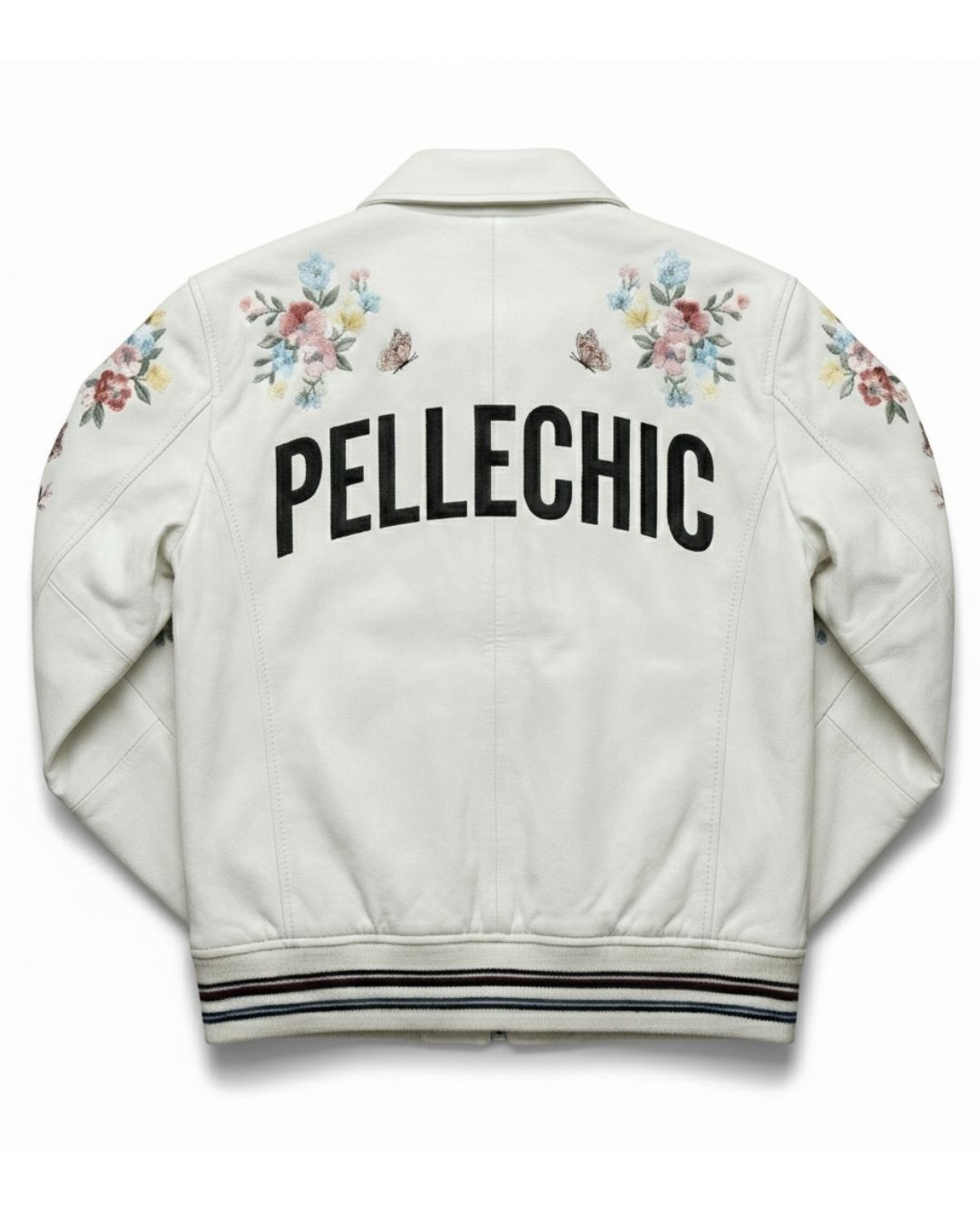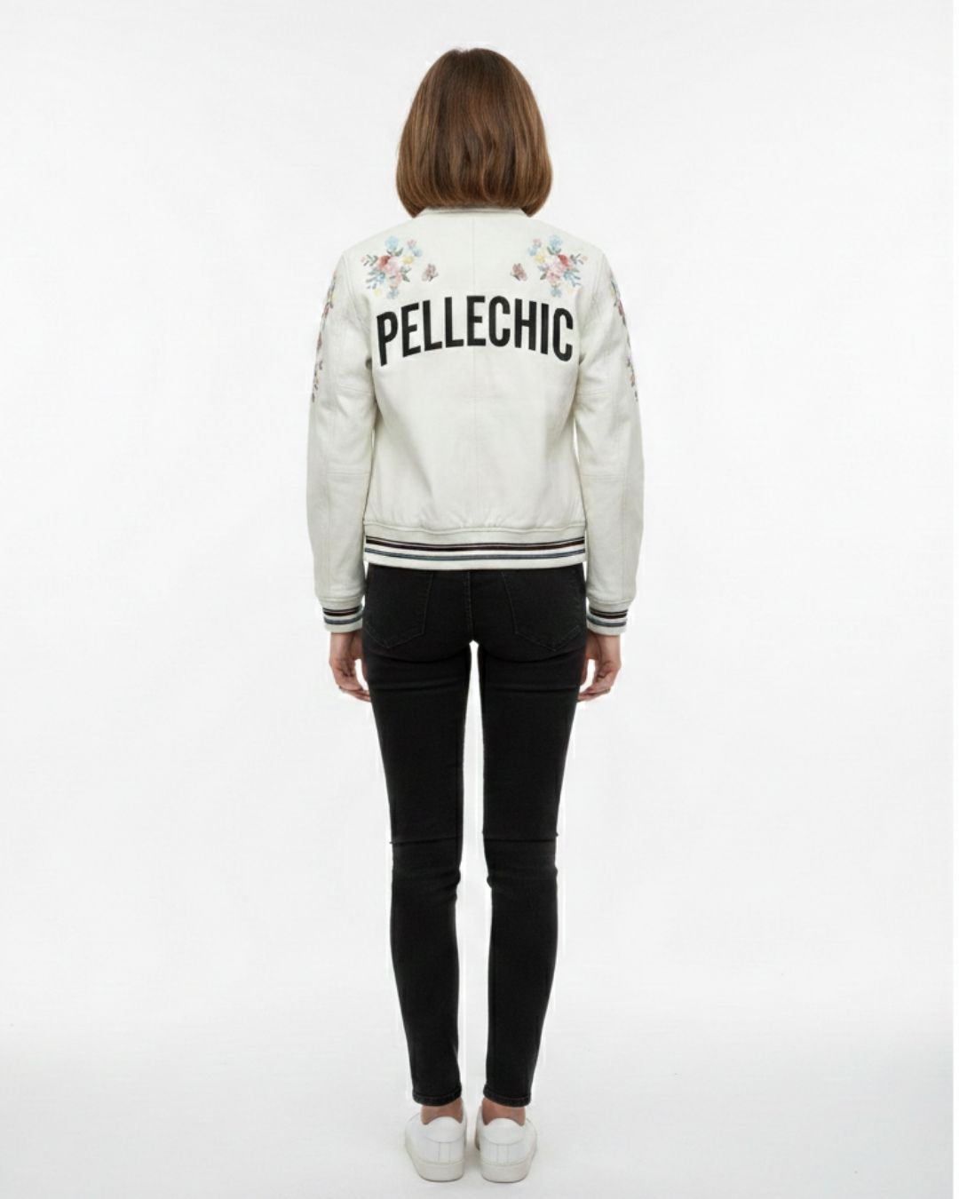 Pure Elegance in Every Stitch Redefine luxury with the PelleChic Floral Butterfly Bomber in Pristine White. This jacket is a masterpiece of artistic design, blending the crisp, clean look of premium white leather with vibrant, hand-stitched floral details for a look that is both fresh and elite.
