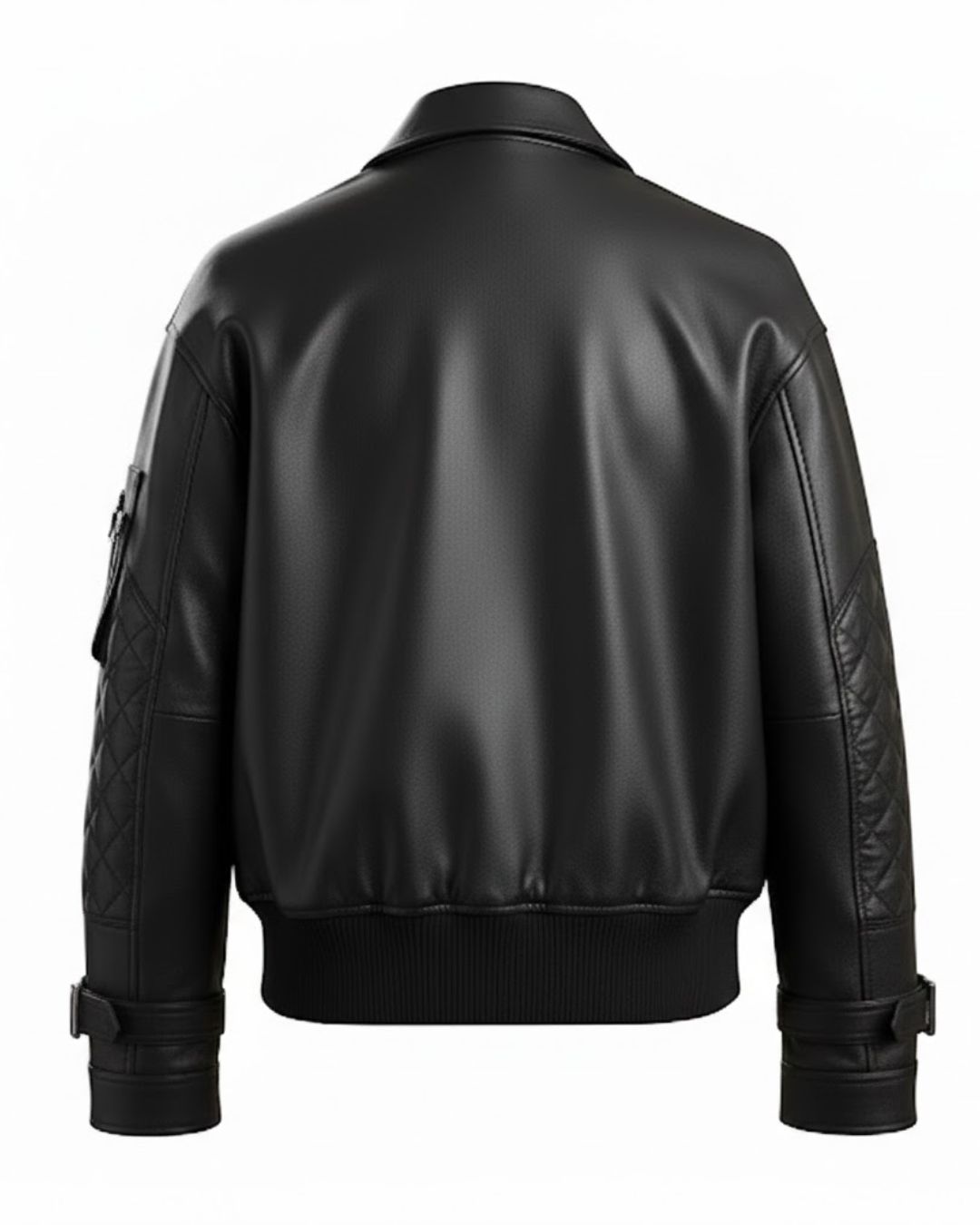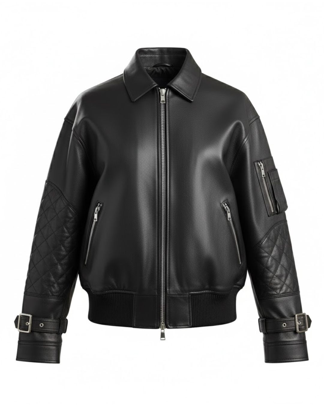 Signature Quilted Detailing: Features intricate diamond-quilted patterns on the elbows and forearms, adding a rugged biker-inspired edge to the classic bomber shape.