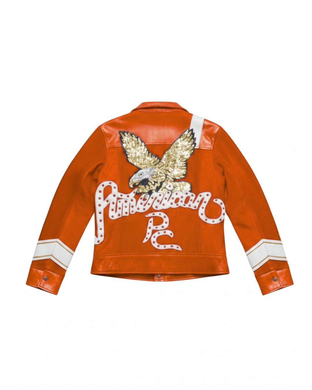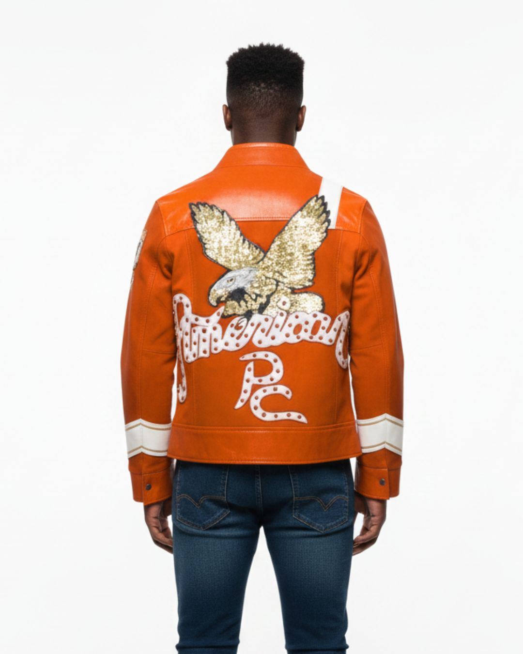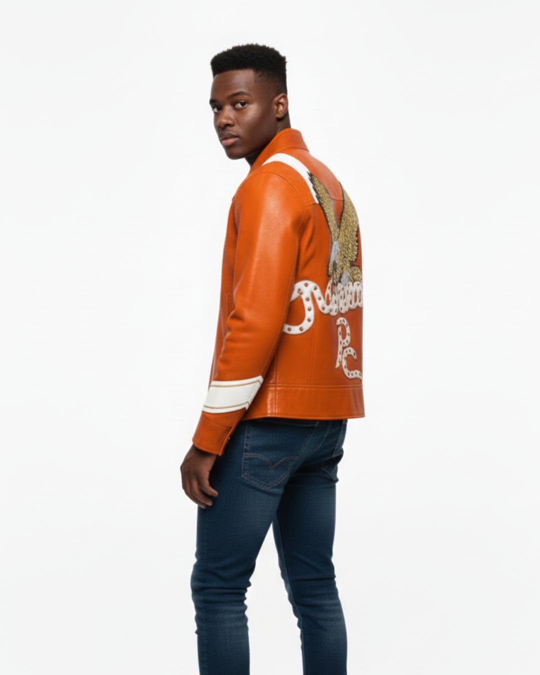 This isn’t just a jacket; it’s a high-octane tribute to classic Americana and rebellious style. Crafted in a striking burnt-orange hue, this moto-inspired piece features premium detailing designed to turn heads from every angle