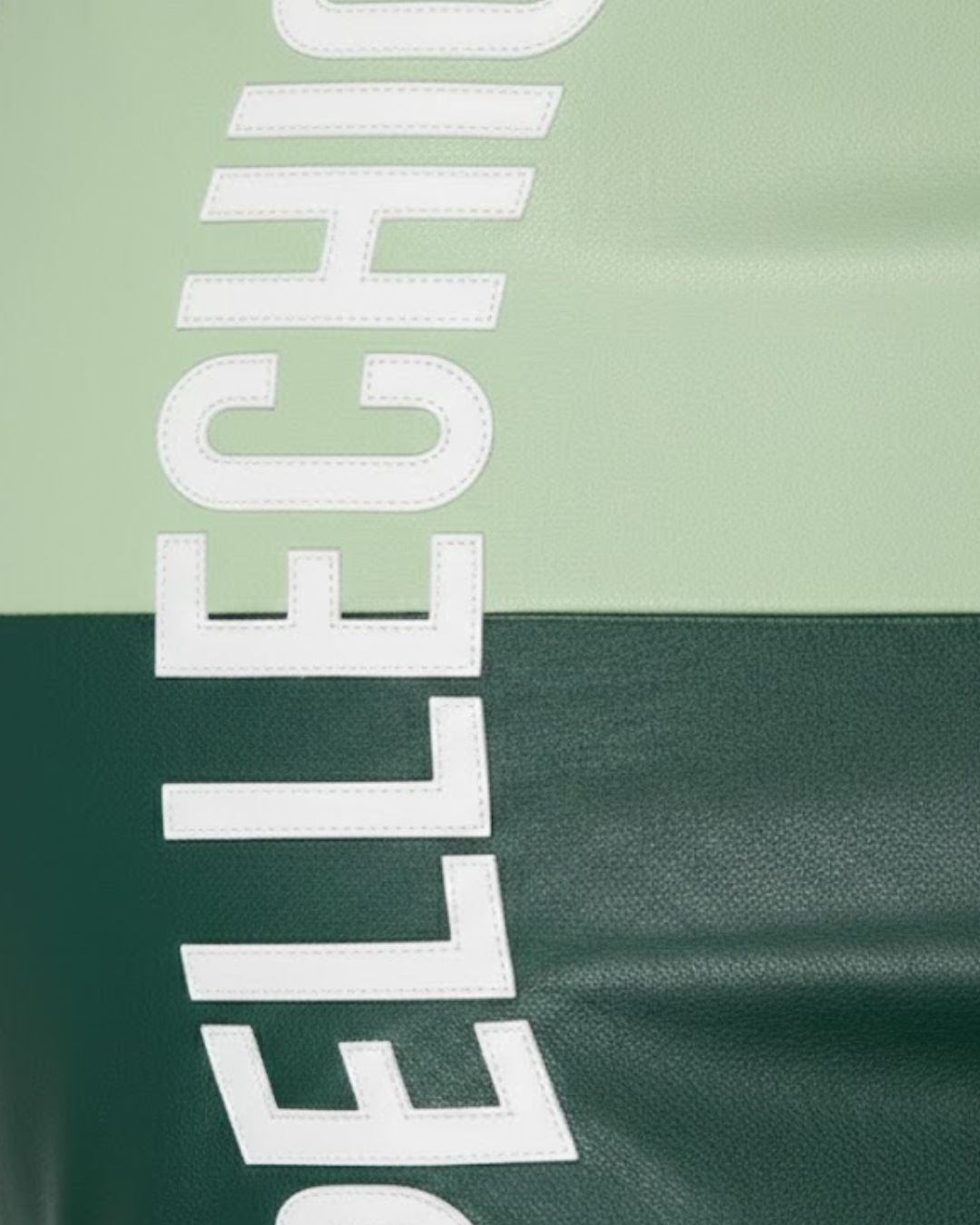 Signature Branding: The iconic “PELLE CHIC” logo is boldly arched across the back in high-contrast white lettering for maximum brand recognition.